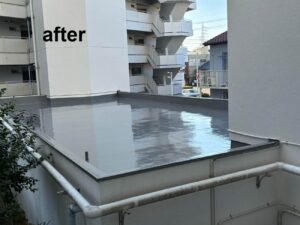 その仕上がりに大変ご満足いただき、今回は1F屋上全体の防水工事のご依頼がありました。