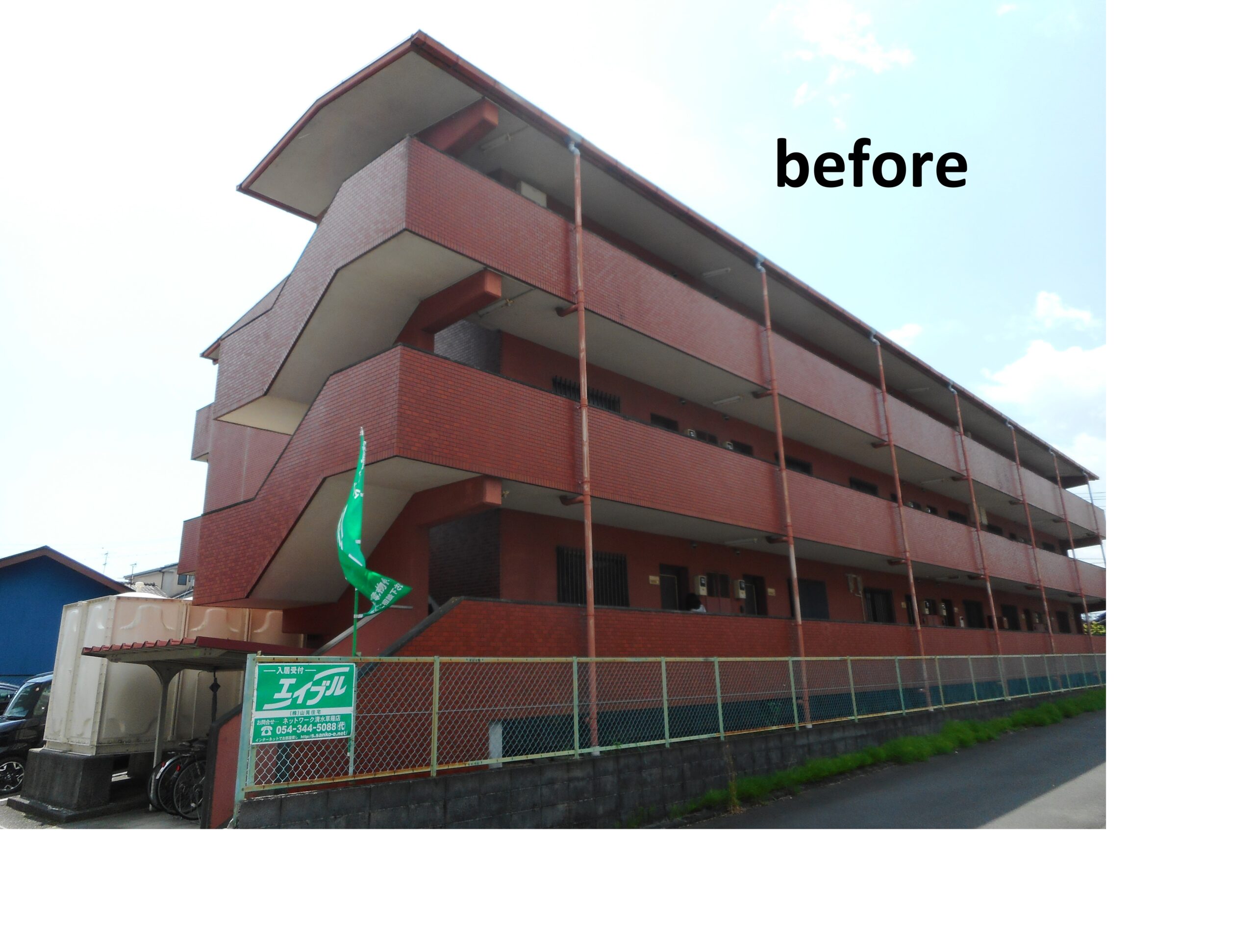 外壁塗装工事/屋上防水工事/ベランダ床防水工事/クラック補修工事/シーリング工事/階段床防滑シート貼り工事/消火器BOX・郵便ポスト交換工事 こちらは3F建ての集合住宅です。外壁が赤色のタイル張りなので、内壁もタイルの色に近い赤茶色を選びました。統一感のあるなめらかなイメージにしております。軒天には白系色を使用し、外壁の鮮やかさが更に際立ちます。また共用通路、階段には防滑シートを張り、ラグジュアリー感を出しました。