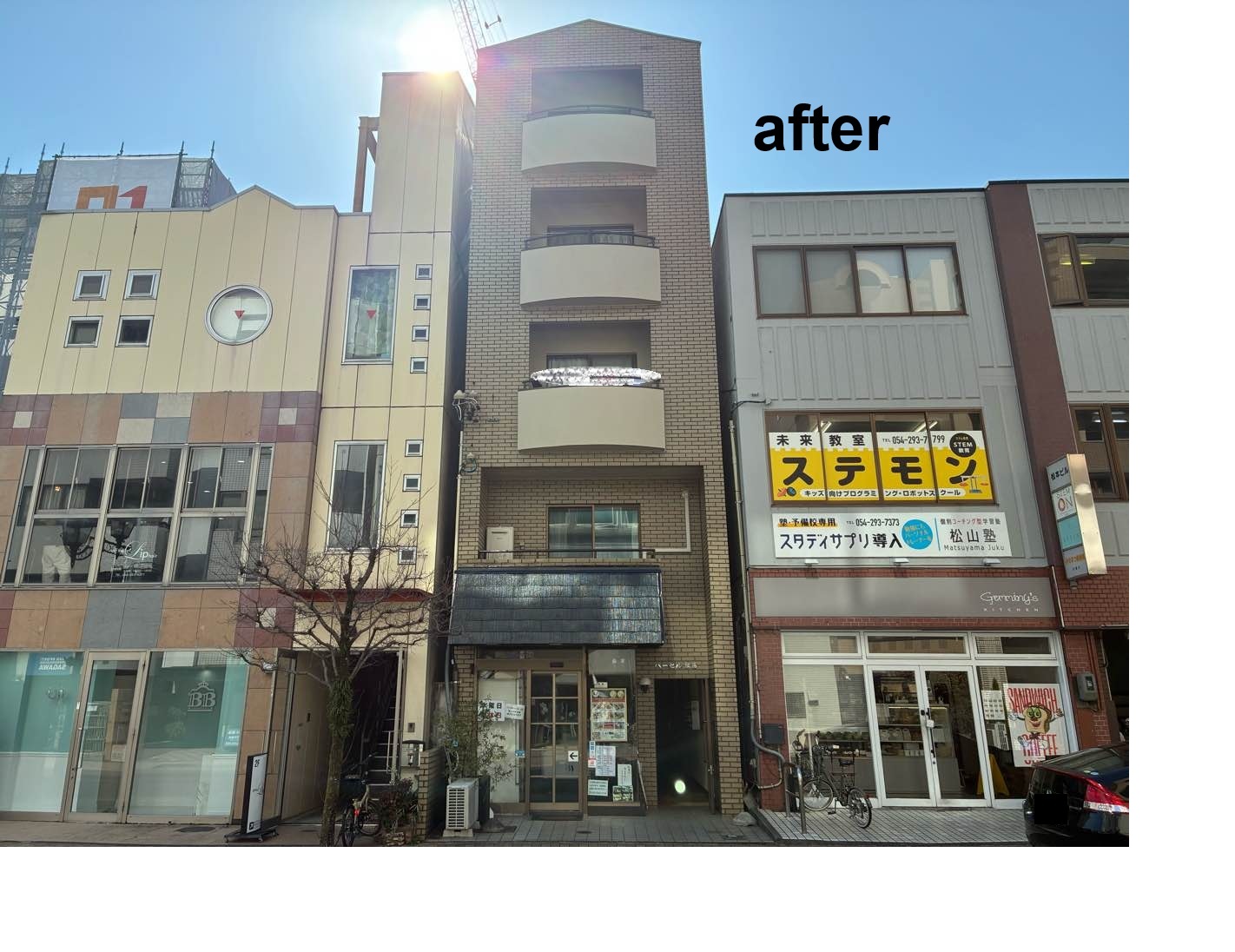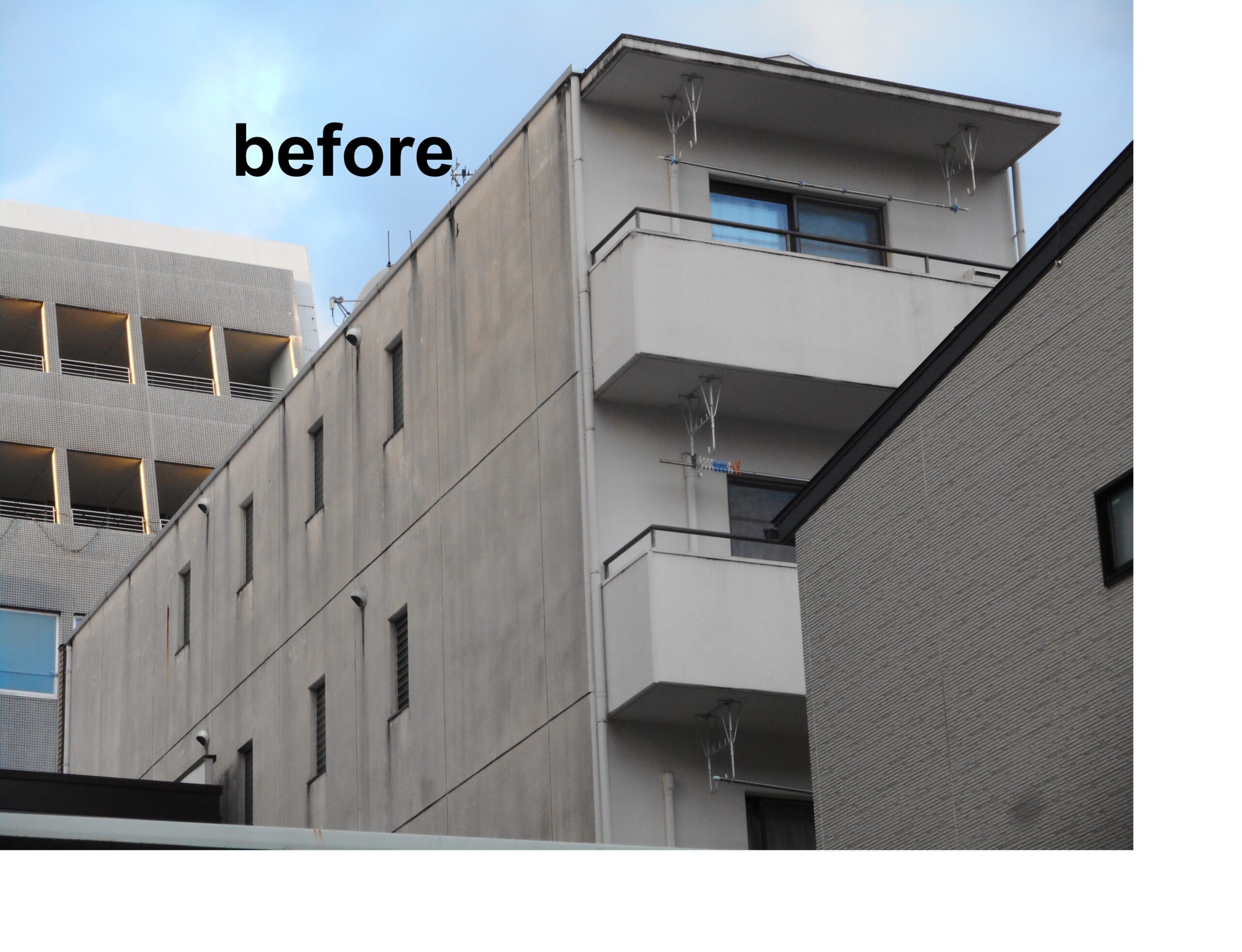 外壁塗装工事/屋上防水工事/バルコニー防水工事/クラック補修工事/シーリング工事           こちらは5階建ての物件です。株式会社マルコもちづき様よりご紹介いただき、雨漏り箇所のご相談がございました。街中に建つご自宅兼アパートで近隣同士の間が狭く、全体的に塗装工事経験がないことから、雨漏りの原因になっているという状態が分かりました。今回は全体の塗装工事をご提案しました。今までに経験の無い狭い箇所の工事になりましたが、スタッフ一同の念密な打ち合わせでやり遂げることが出来ました。オーナー様にも大変ご満足していただけました。